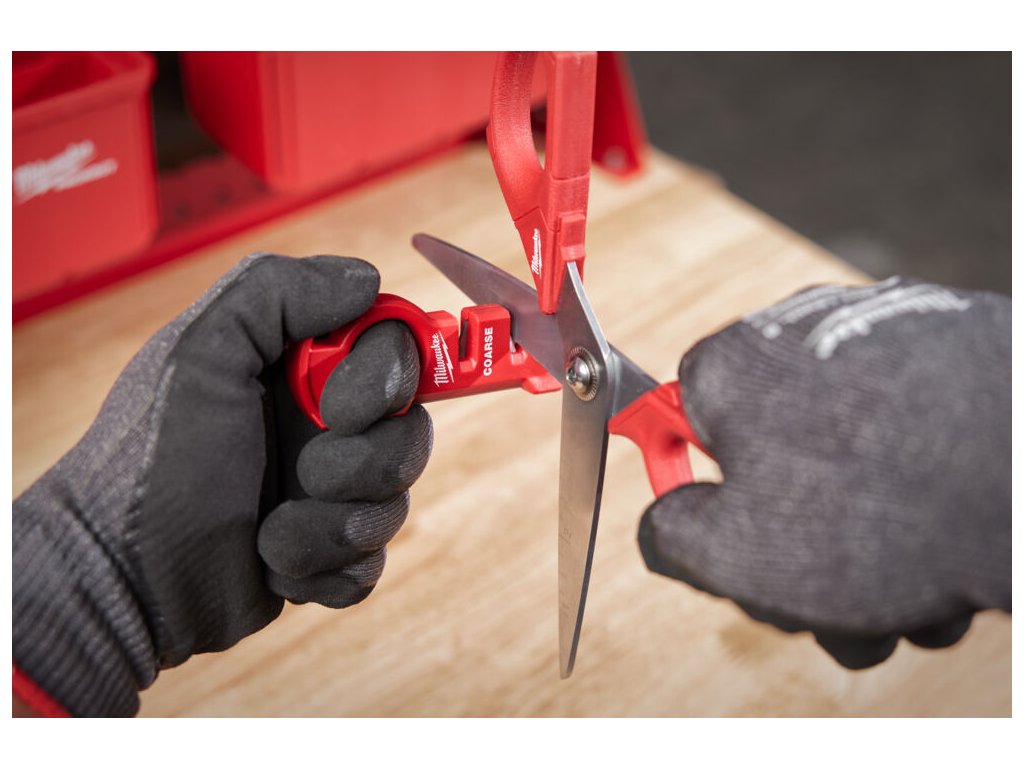 Brousek nabízí tři různé režimy ostření – pro těžší, lehčí a zoubkované čepele. To zajišťuje maximální všestrannost při práci s různými typy nožů i nůžkami. Prstový otvor poskytuje lepší úchop a kontrolu při ostření, zatímco praktický magnet umožňuje pohodlné skladování na kovových površích.