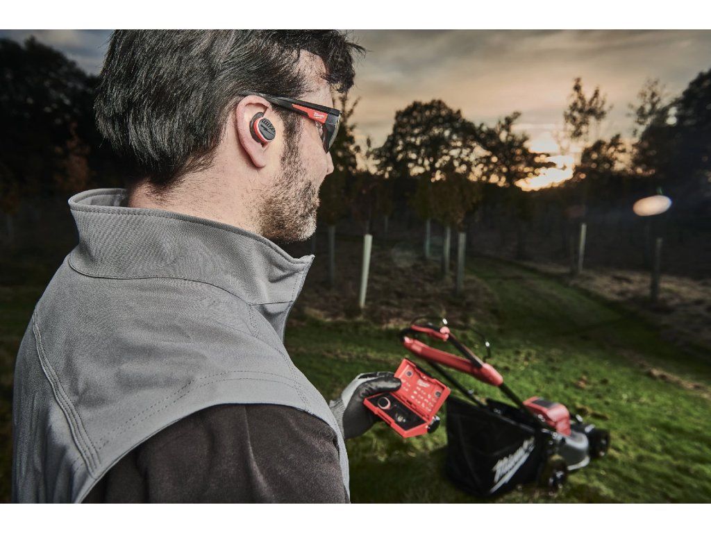 Baterie poskytuje až 10 hodin provozu na jedno nabití, přičemž nabíjecí pouzdro s technologií REDLITHIUM™ USB prodlužuje dobu provozu až na 70 hodin díky opakovanému nabíjení. Stav baterie lze kontrolovat díky ukazateli nabití. Odolná konstrukce s krytím IP67 u sluchátek a IP64 u pouzdra chrání před prachem a vodou.