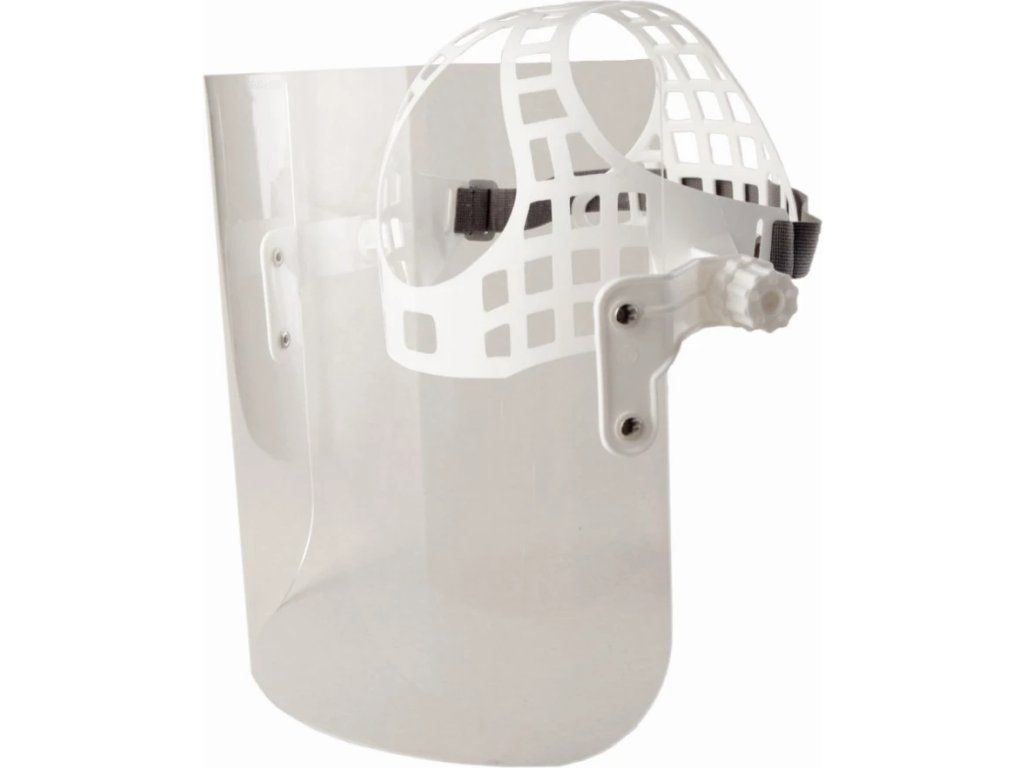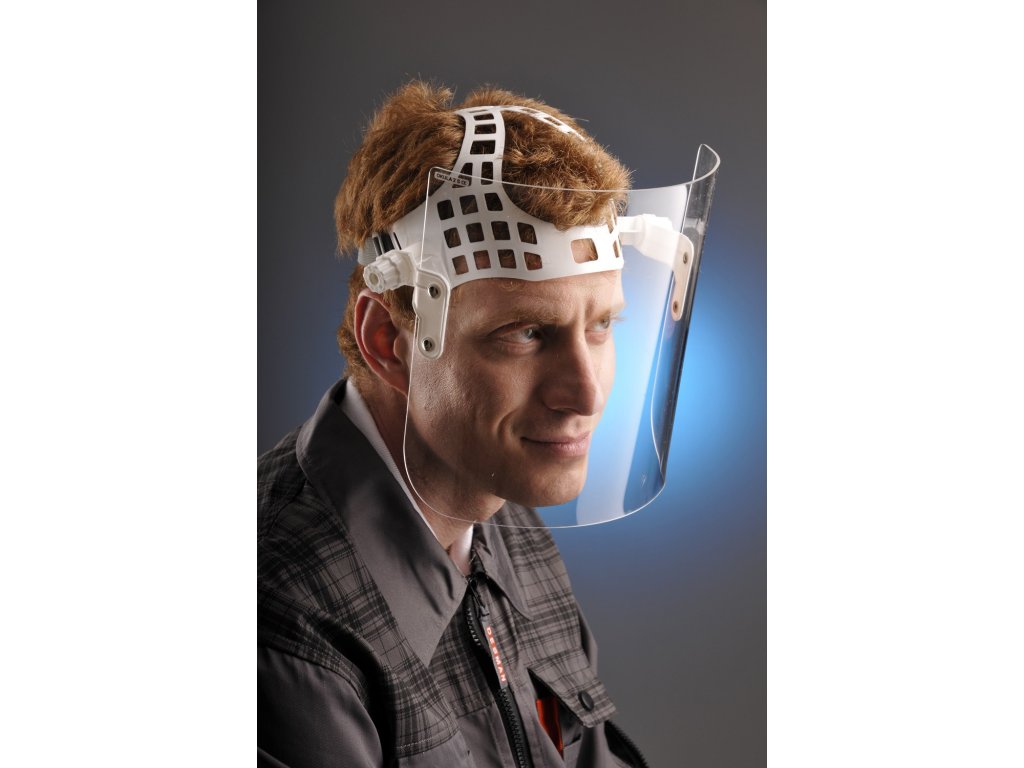 Ochranný štít určený pro spolehlivou ochranu obličeje a očí při celé řadě pracovních činností, kde hrozí riziko mechanického poškození. Je vybaven pohodlným náhlavním nosičem a čirým hledím z plexiskla (PMMA) o tloušťce 2 mm, které poskytuje spolehlivou ochranu proti nárazu pomalu letících částic.