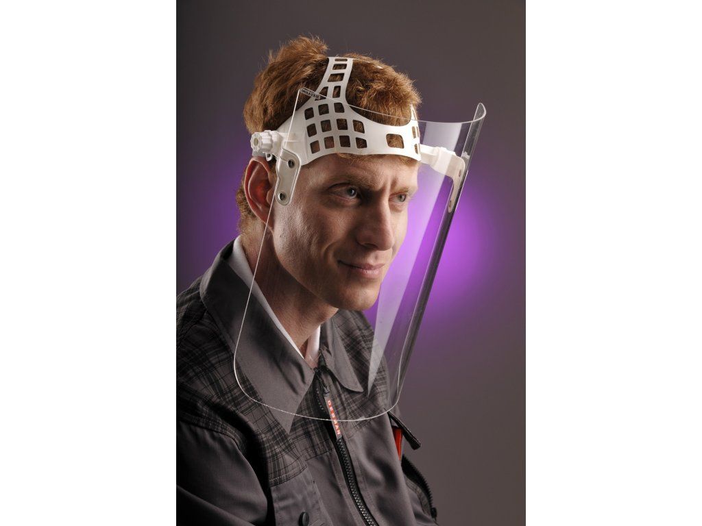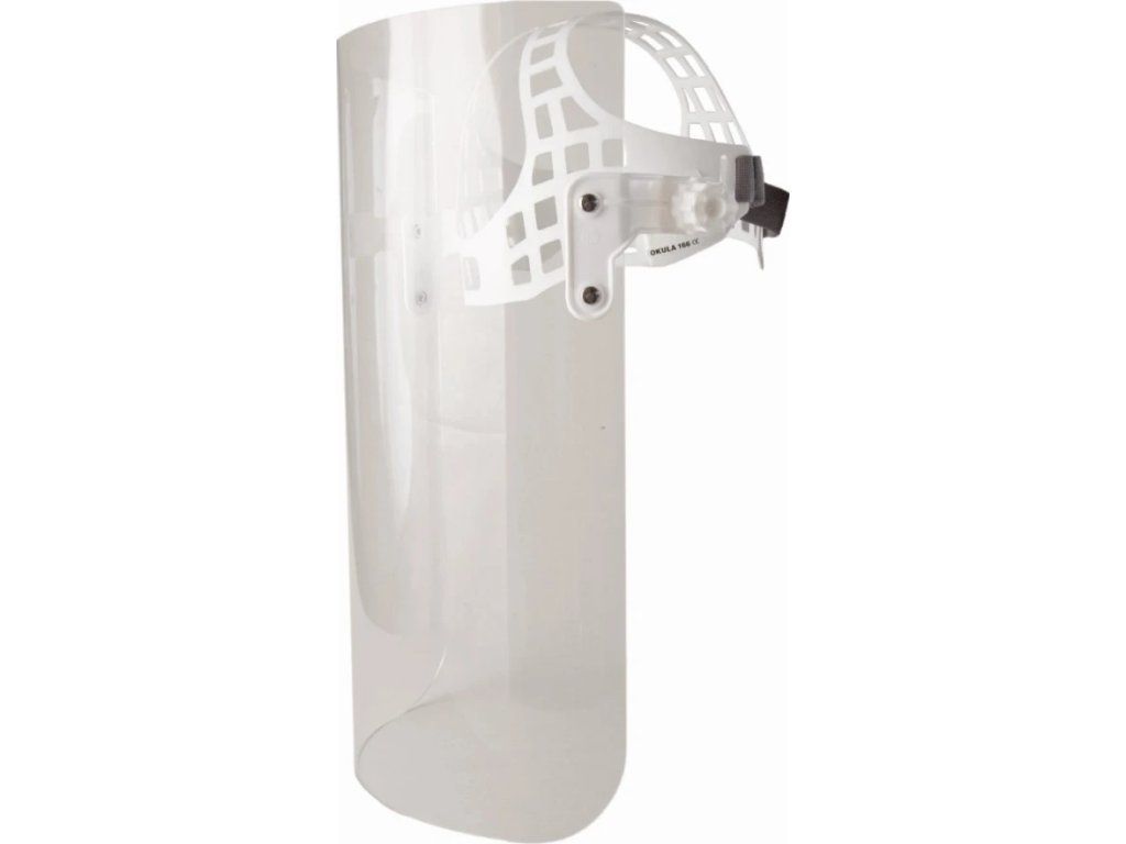 Ochranný štít představující spolehlivý prostředek pro ochranu zraku i obličeje při široké škále pracovních činností. Je tvořen pevným náhlavním nosičem a čirým hledím z plexiskla (PMMA) o tloušťce 2 mm, které zajišťuje jasný výhled a zároveň vysokou odolnost vůči nárazům pomalu letících částic.