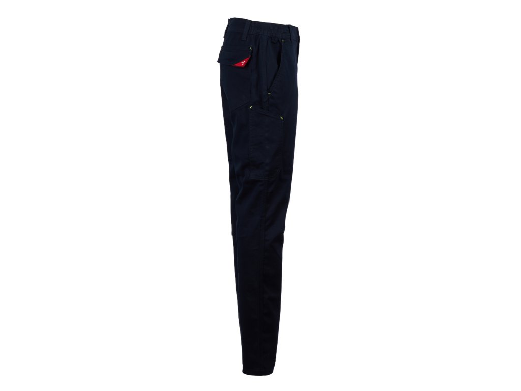 Kalhoty jsou vybaveny poutky na opasek a elastickým páskem, který umožňuje lepší přizpůsobení, zapínáním na zip a knoflík pro pevné držení v pase, několika praktickými kapsami - 2 předními kapsami, pravou postranní kapsou na svinovací metr a zadní kapsou s klopou na suchý zip, a také trojitým prošitím pro zvýšenou odolnost.