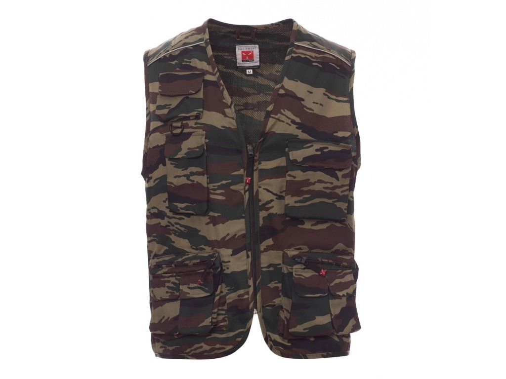 Vesta je vybavena předním zipem a zejména systémem kapes, který umožňuje mít všechny potřebné pomůcky vždy po ruce. Na přední straně najdete víceúčelové kapsy, včetně horní kapsy na levé straně, která je doplněna oboustranným pouzdrem na jmenovku a reflexním doplňkem, a zadní straně se nachází velká lovecká kapsa.