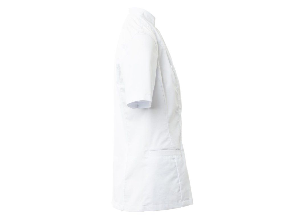 Díky síťovině na zádech je rondon vysoce prodyšný a efektivně odvádí teplo, což pomáhá udržet pohodlí i při dlouhých směnách v horkém prostředí. Dvouřadé zapínání na patentky spolu s překlápěcí klopou a inovativním výstřihem do V dodává elegantní vzhled a umožňuje individuální přizpůsobení.