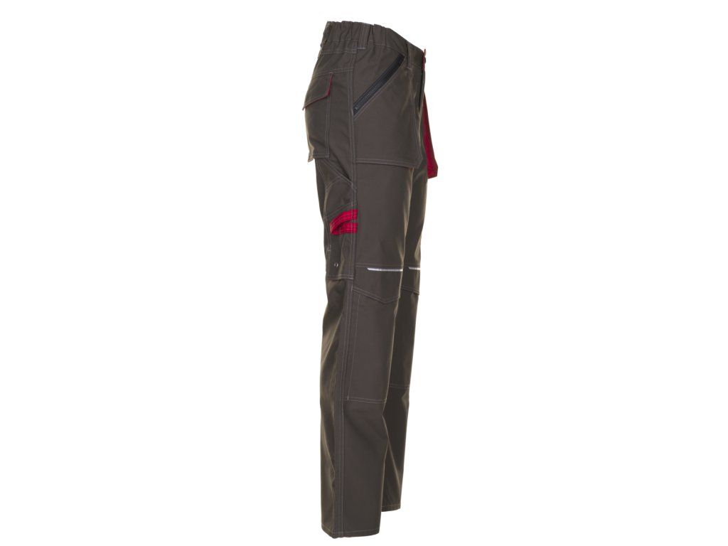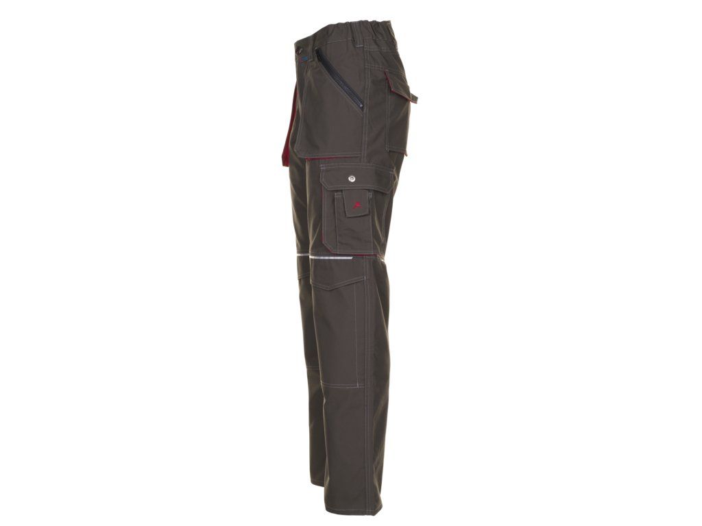 Pas je vybaven elastickým prvkem, který pomáhá udržet pohodlné přizpůsobení postavě, a také 7 poutky na opasek a zapínáním na zip s kovovým knoflíkem. Dále jsou kalhoty vybaveny poutkem na kladivo, reflexním lemem vpředu i vzadu a jemným kontrastním prošitím pro zajištění vyšší odolnosti a delší životnosti oděvu.