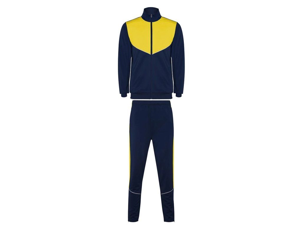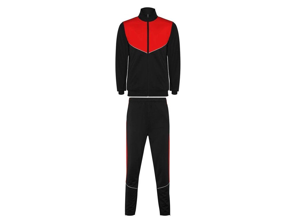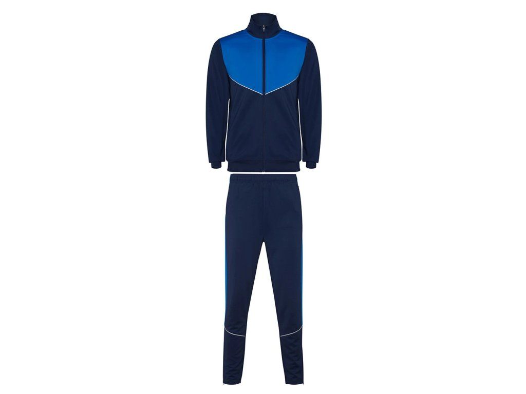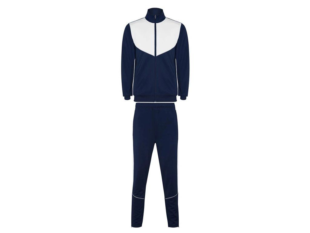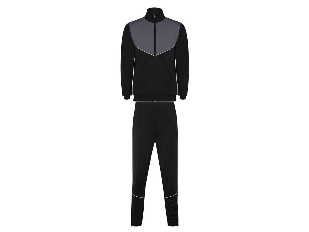 Součástí je sportovní bunda s kontrastními detaily, které podtrhují moderní design. Na přední části je našité ozdobné lemování na hrudi, doplněné o vysoký stojací límec s kontrastním prošitím. Bunda je vybavena praktickým zipem po celé délce, dvěma bočními kapsami, a žebrovanými manžetami a spodním lemem.