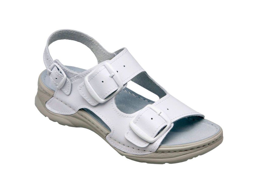 Dámský bílý sandál v bílém provedení, který nabízí harmonické spojení pohodlí, funkčnosti a zdravotních benefitů, což z něj činí ideální volbu pro zdravotnictví, sociální služby, gastronomii i domácí použití. Sandály jsou velmi příjemné na nošení a díky svým vynikajícím vlastnostem jsou také vhodné pro celodenní zátěž.