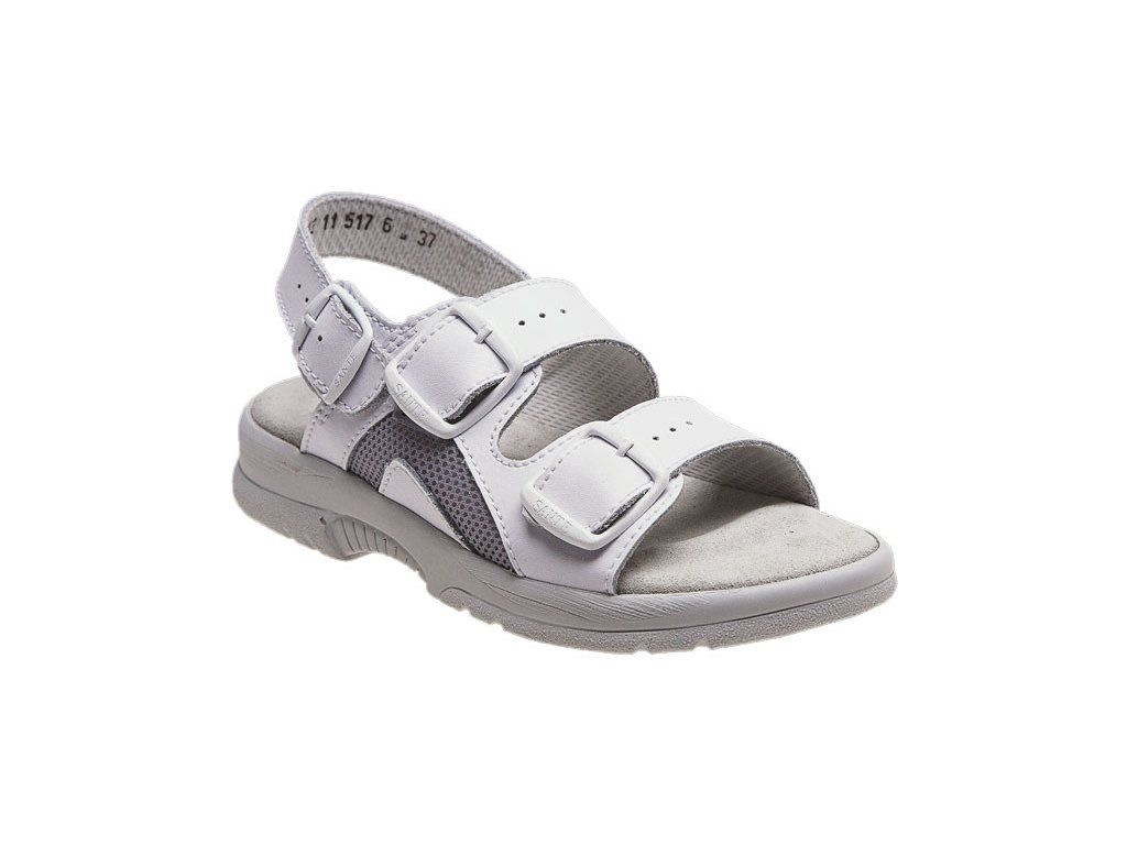 Dámský zdravotní sandál v bílém provedení, které mu dodává čistý a profesionální vzhled vhodný zejména pro zdravotnictví, sociální služby, gastronomii a další provozy s vysokými nároky na hygienu a komfort po celý pracovní den. Protiskluzová podešev navíc poskytuje bezpečný a stabilní krok a zároveň nezanechává šmouhy.