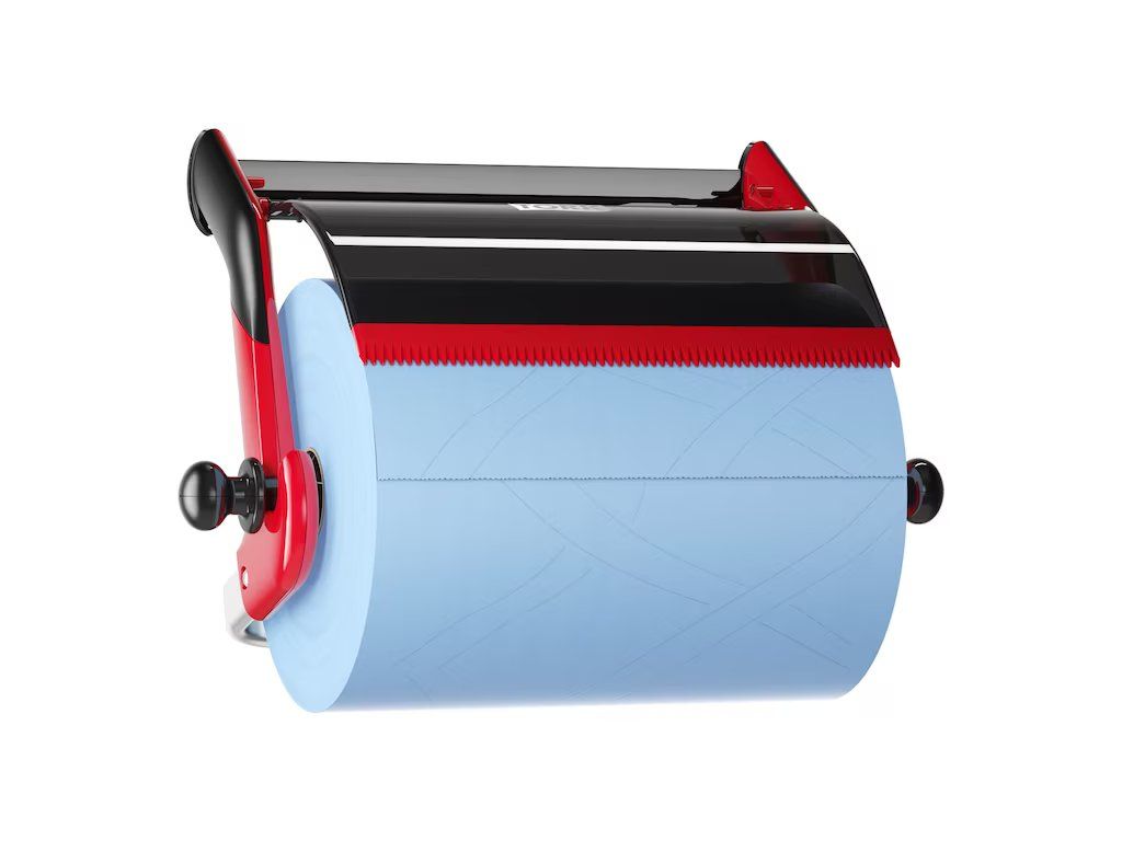 Díky ergonomickému designu s integrovanou rukojetí lze držák snadno přemístit a připevnit přesně tam, kde je potřeba. Robustní ozubený systém umožňuje bezpečné a přesné odtrhávání papírových utěrek i jednou rukou, což oceníte při práci s nástroji či v rukavicích.
